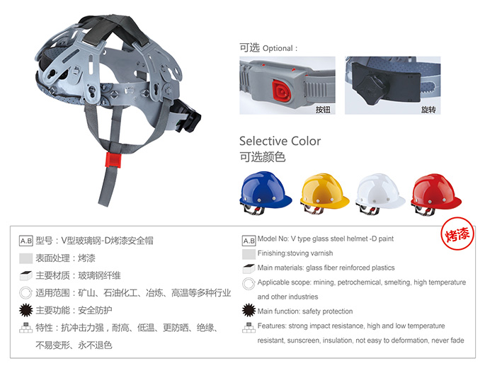 玻璃钢烤漆安全帽  (型号:V型玻璃钢-D)