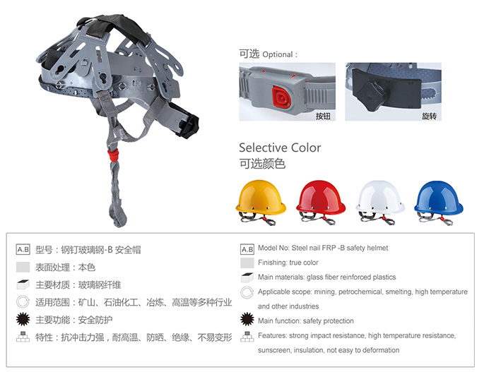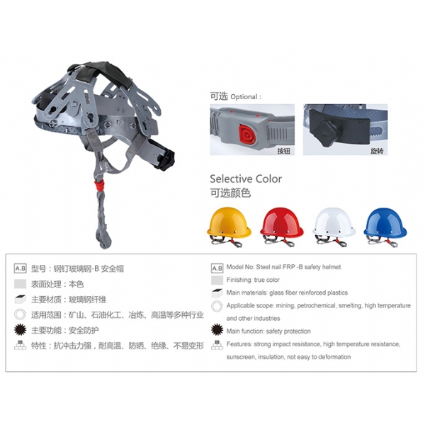 钢钉玻璃钢安全帽  (型号:钢钉玻璃钢-B)